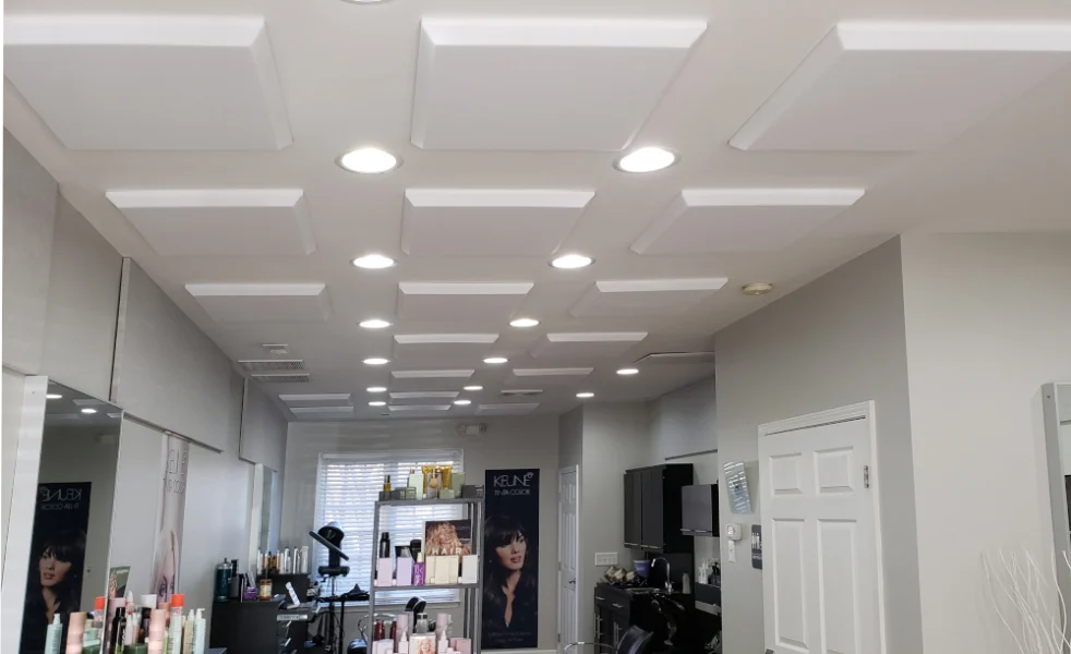 Highly absorptive acoustic panels designed to be mounted into an existing drop ceiling assembly or applied directly onto the ceiling surface. Provides an instant transformation of room acoustics, with the flexibility of matching or contrasting aesthetics – available in natural white or ‘PCC’ (Pantone Custom Colored).